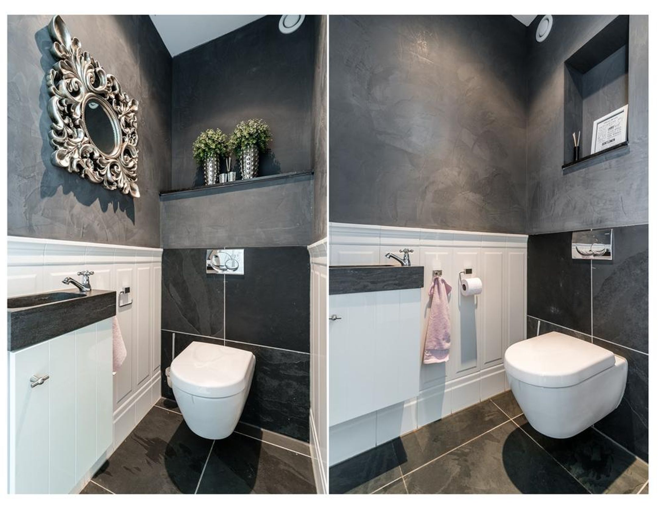 De separate toiletruimte is tevens net zo stijlvol ingericht zoals de toiletruimte beneden.