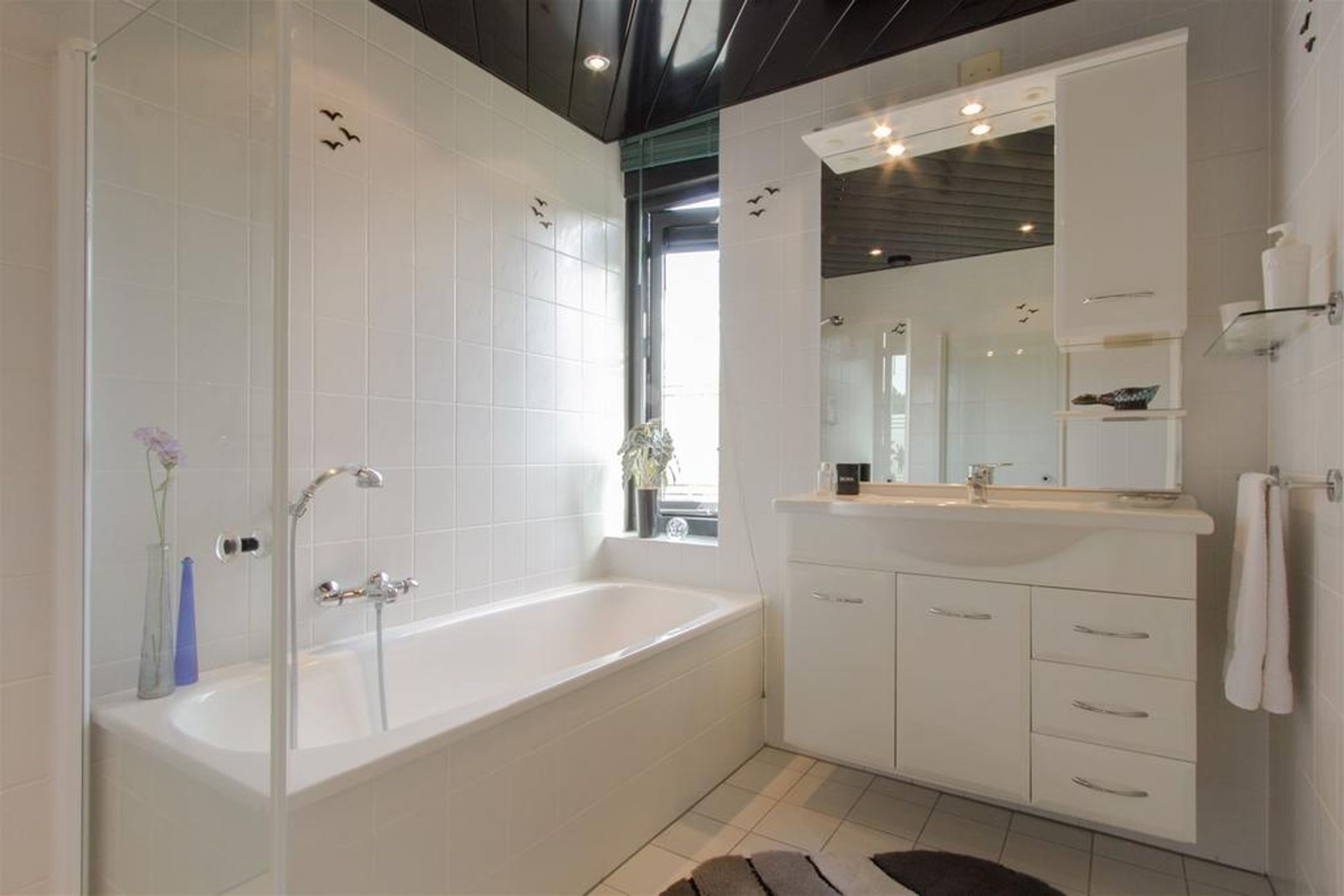 Badkamer 1 beschikt over een ligbad met thermostaatkraan en handdouche, een douchecabine met thermostaatkraan en handdouche, een wasmeubel met geïntegreerde waskom en kastruimte en een designradiator. Badkamer 2 beschikt over een douchecabine met thermostaatkraan en wastafel met planchet en spiegel. In de praktische separate wasruimte treft u de mechanische ventilatie unit en de cv-ketel (2013). Tevens bevinden zich hier de aansluitingen voor de wasmachine en wasdroger.