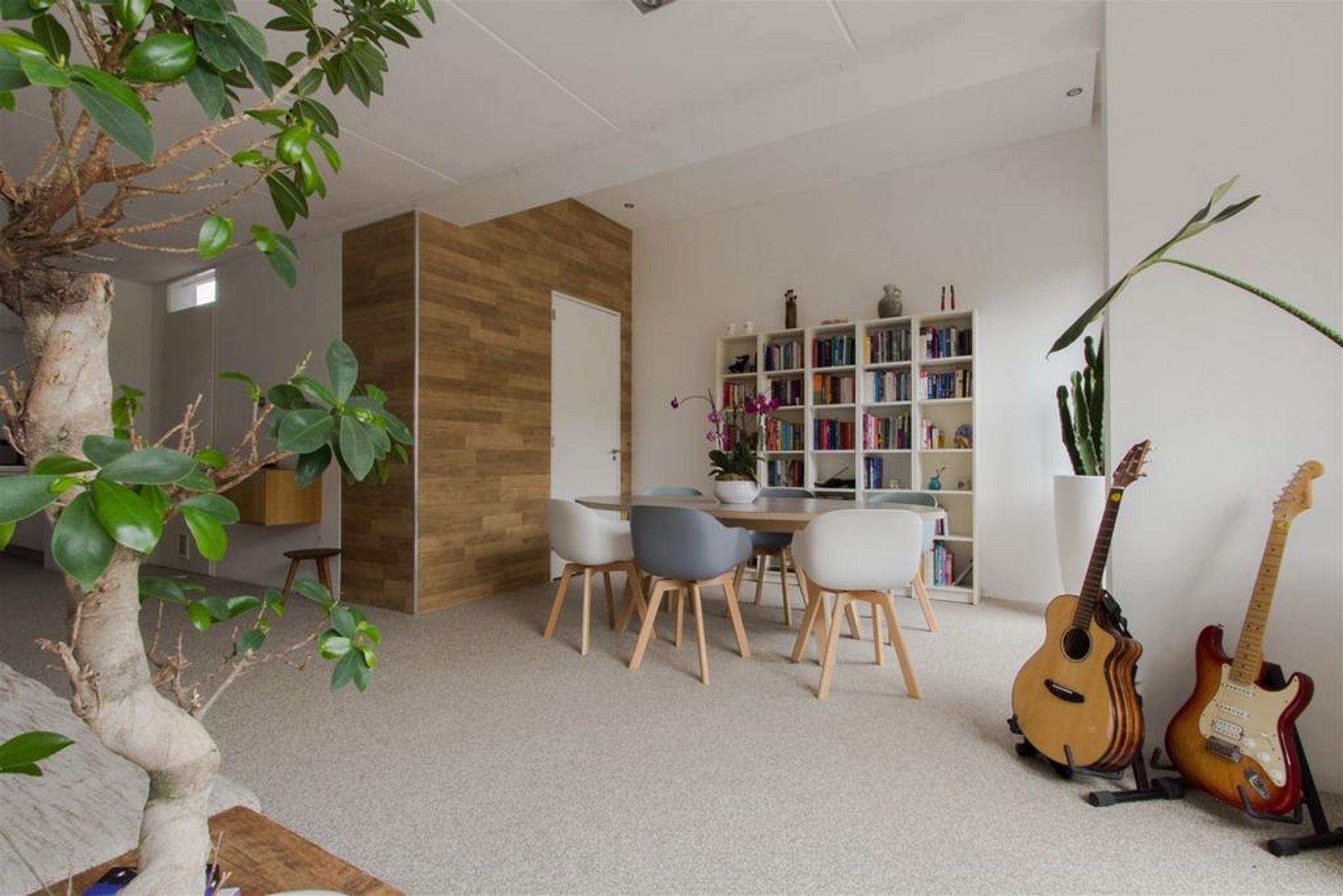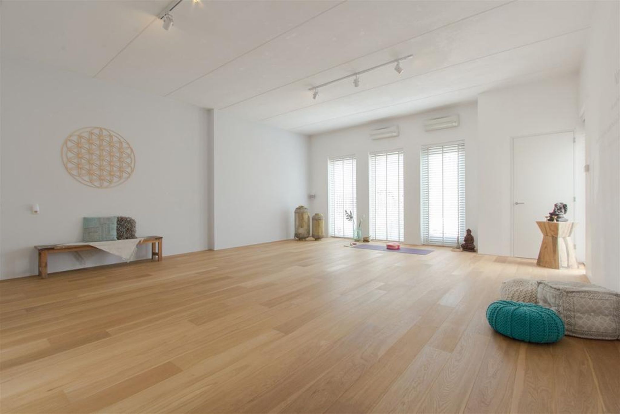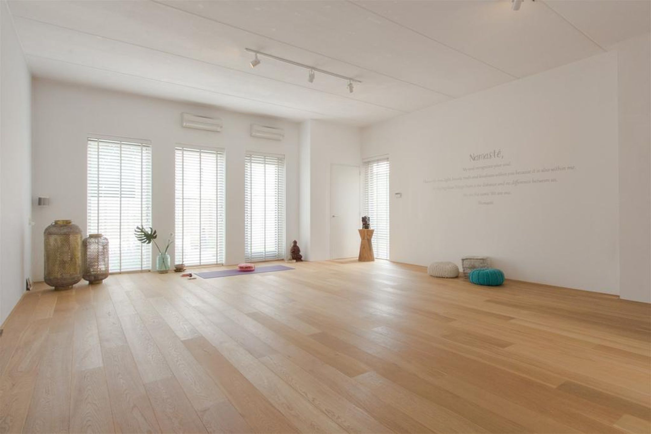 Multifunctionele ruimte: (kantoor, praktijk, hobby, wonen, enz. enz.) Links van de woning beschikt u over een zeer ruime aangebouwde multifunctionele ruimte welke tot het maximum is uitgebouwd en daardoor u een 75 m2 te bieden heeft. De hoogte van 3,37 m. geeft het geheel een fantastisch ruimtelijk effect. De bedrijfsruimte heeft een eigen entree (huisnr. 8) en is tevens binnendoor door een geluidssluis vanuit de woning te betreden. Thans is deze unit ingericht met een ruime ontvangst- wachtruimte, toiletruimte en een zeer royale fitness/meditatie ruimte. Wanden zijn keurig afgewerkt en op de vloer ligt een Eiken planken vloer met daaronder comfortabele vloerverwarming. De bedrijfsruimte beschikt over een eigen INTERGAS HRE cv ketel uit 2015 en de twee airco unit bieden de nodige verkoeling. Uiteraard zijn alle indelingsvarianten en gebruiksvarianten mogelijk mits e.e.a. bij kleinschalige bedrijfsvoering blijft.