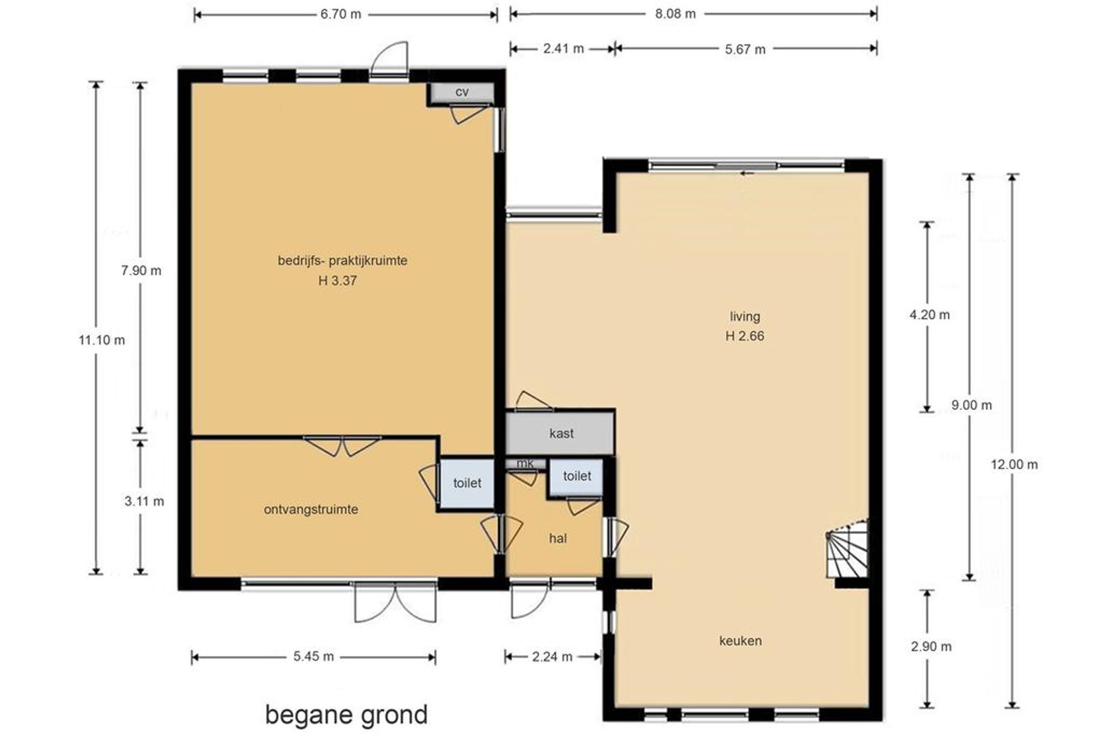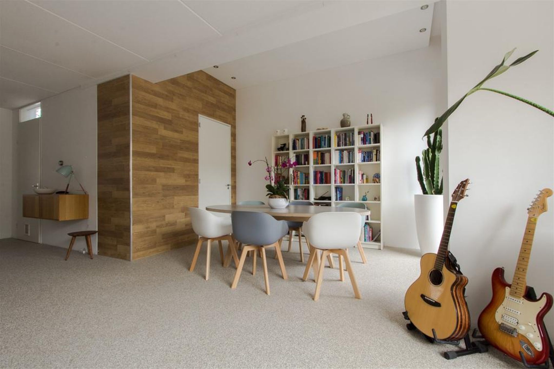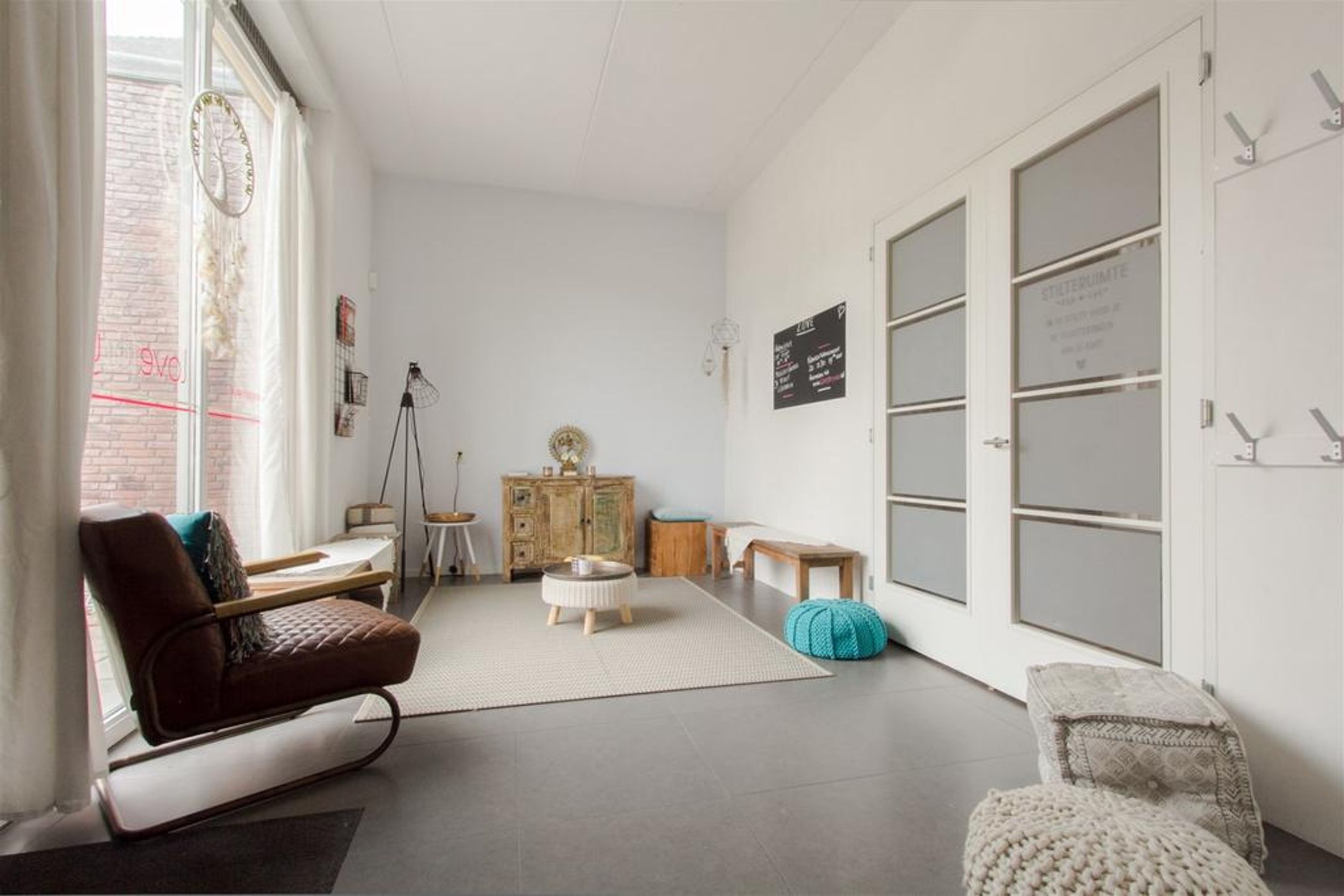Multifunctionele ruimte: (kantoor, praktijk, hobby, wonen, enz. enz.) Links van de woning beschikt u over een zeer ruime aangebouwde multifunctionele ruimte welke tot het maximum is uitgebouwd en daardoor u een 75 m2 te bieden heeft. De hoogte van 3,37 m. geeft het geheel een fantastisch ruimtelijk effect. De bedrijfsruimte heeft een eigen entree (huisnr. 8) en is tevens binnendoor door een geluidssluis vanuit de woning te betreden. Thans is deze unit ingericht met een ruime ontvangst- wachtruimte, toiletruimte en een zeer royale fitness/meditatie ruimte. Wanden zijn keurig afgewerkt en op de vloer ligt een Eiken planken vloer met daaronder comfortabele vloerverwarming. De bedrijfsruimte beschikt over een eigen INTERGAS HRE cv ketel uit 2015 en de twee airco unit bieden de nodige verkoeling. Uiteraard zijn alle indelingsvarianten en gebruiksvarianten mogelijk mits e.e.a. bij kleinschalige bedrijfsvoering blijft.