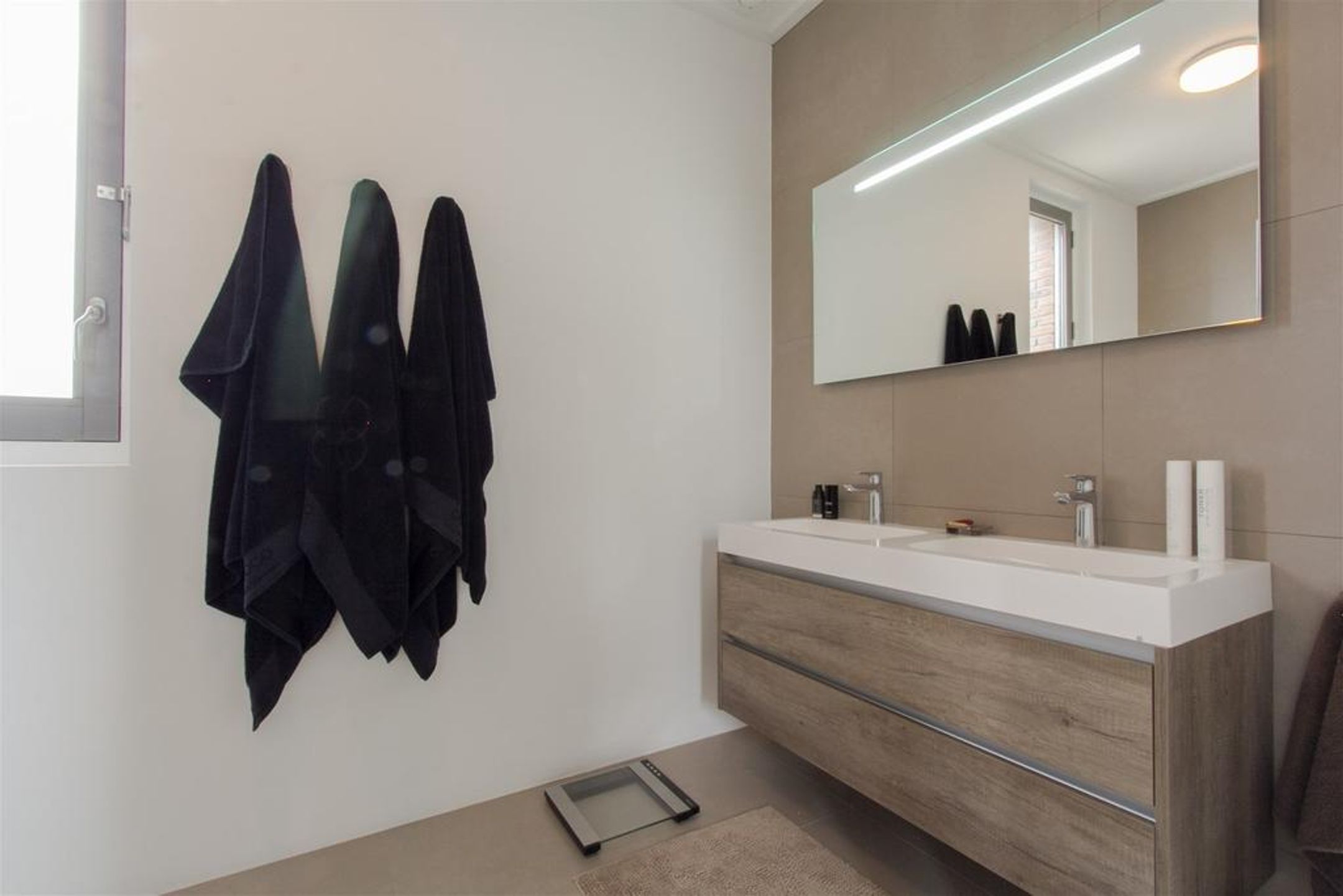 Verdieping: Over de open hardhouten trap in de living bereikt u overloop op de verdieping. Hier is een tussendeur geplaatst naar de corridor om eventueel een te veel aan geluid vanaf beneden te weren. Vanuit de bouw is de verdieping verlengd wat duidelijk zichtbaar is door de grotere ontstane ruimte in de slaapkamers en wasruimte. De hoog oplopende plafonds geven de verschillende vertrekken een extra ruimtelijk effect en tevens is de verdieping voorzien van een airco installatie. Vanuit de corridor heeft u toegang tot drie in grootte variërende slaapkamers, een ruime praktische wasruimte en de badkamer. De badkamer is modern ingericht en uitgevoerd met een ruime inloopdouche met hardglazen wand, thermostaatkraan, hand- en regendouche, Een breed wasmeubel met twee geïntegreerde waskommen en twee brede lades, een brede spiegel met geïntegreerde verlichting en een vrij hangend closet met inbouw reservoir. Het raam voorziet in wenselijk daglicht en ventilatie. In de wasruimte treft u extra bergruimte alsmede de unit van de mechanische ventilatie en de INTERGAS HRE cv-ketel uit 2015.